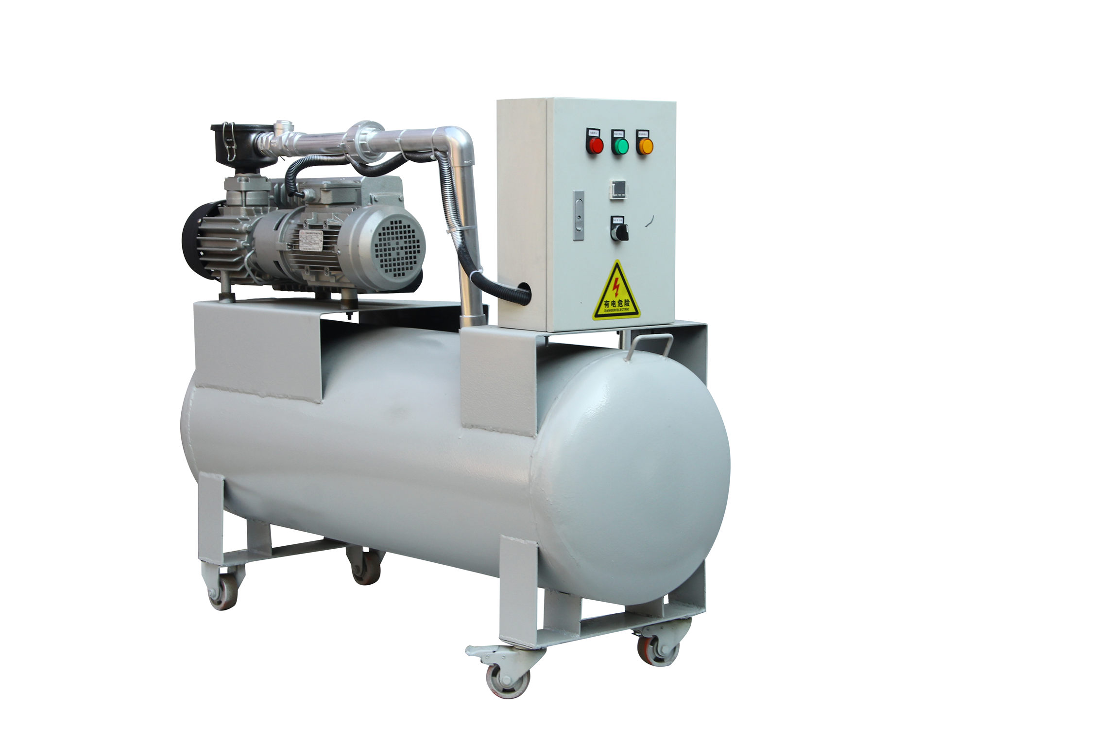 移動式真空負壓站一般包含真空緩沖罐、真空泵、控制制箱、冷卻卻器、真空附件、真空度報警系統(tǒng);該系列負壓站包含兩種類型,即開放式真空負壓站和封閉式真空負壓站,客戶使用環(huán)境良好,操作簡單,成本要求嚴格,則可做開放式真空負壓站;客戶使用環(huán)境惡劣,有大量粉塵,可凝性氣體,腐蝕性氣體等環(huán)境,則做成封閉式。